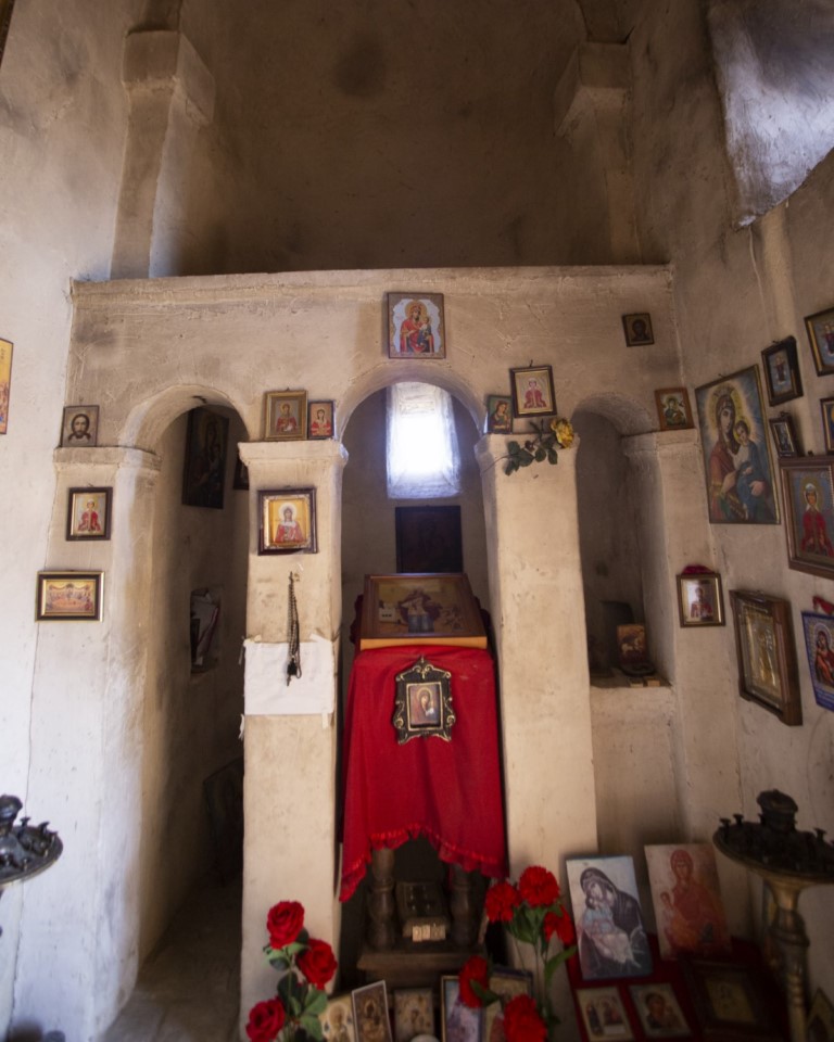 ეკლესია დარბაზულია (5,7 X 4,2 მ), ნაგებია ნატეხი ქვით. იყო ძლიერ დაზიანებული: მთლიანად ჩანგრეული კამარა. სწორკუთხა შესასვლელი სამხრეთ კედლის დასავლეთ ნაწილშია. ნალისებრ აფსიდში ვიწრო სწორკუთხა სარკმელი და ორი ასეთივე ნიშია. სამხრეთ კედელშიც სწორკუთხა სარკმელია.