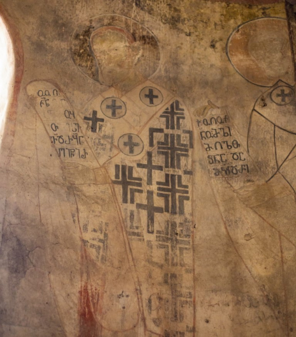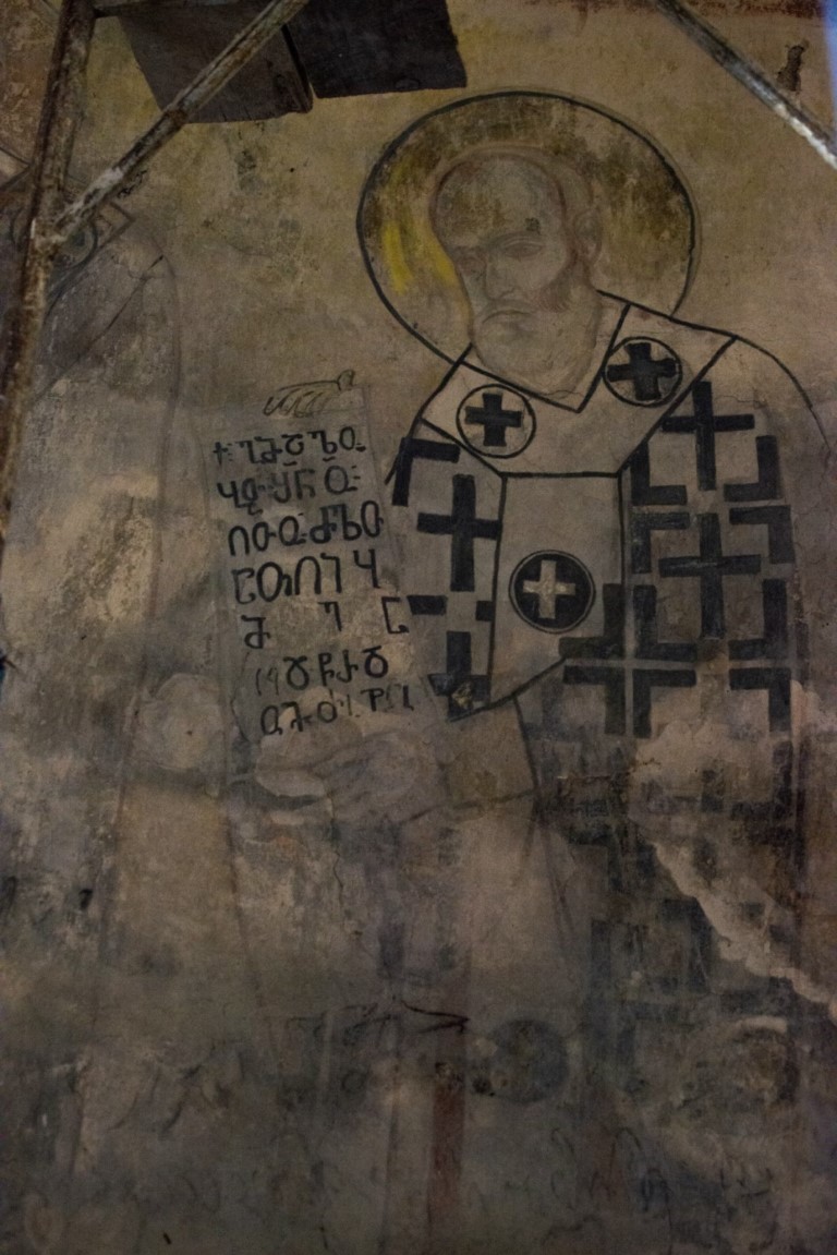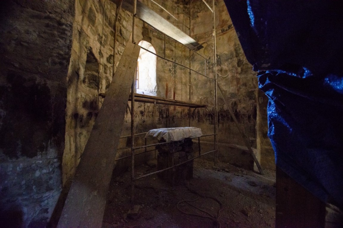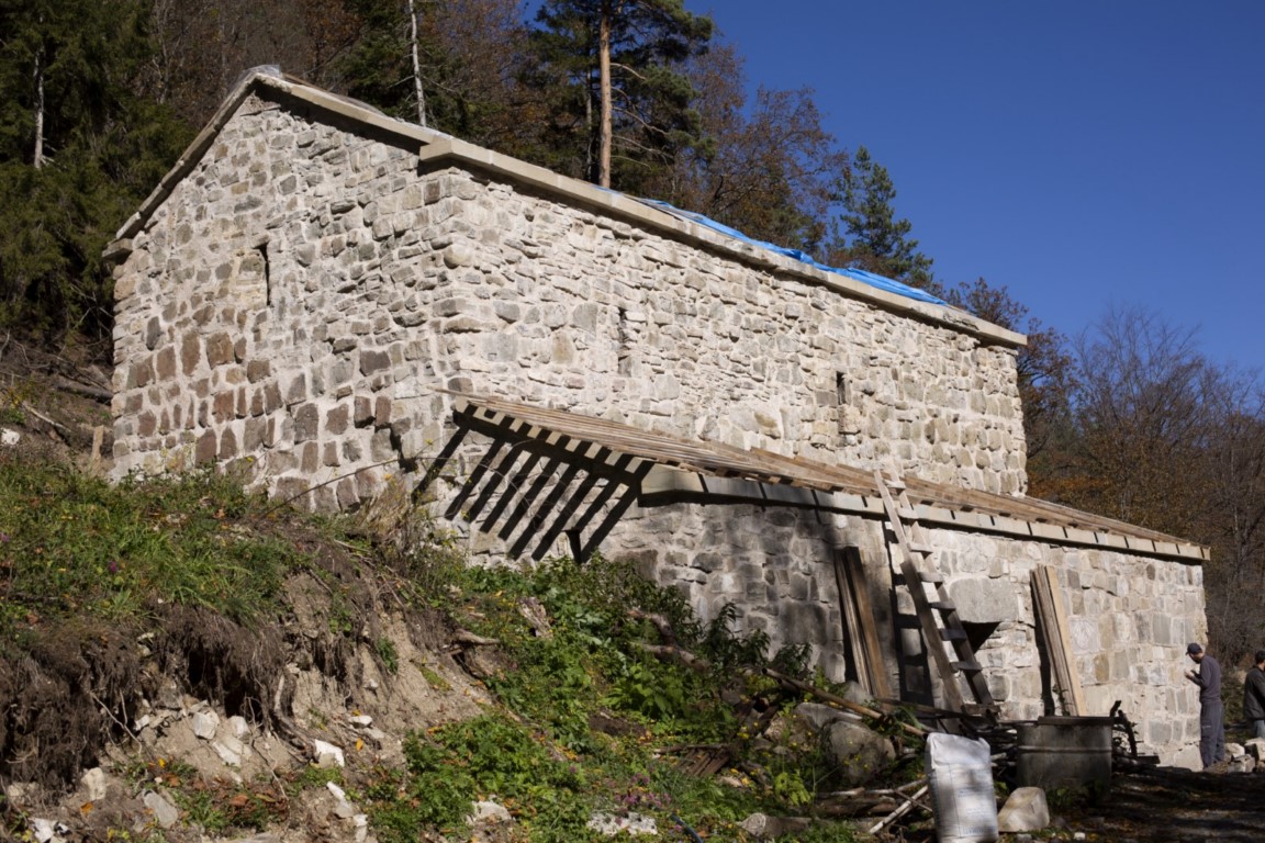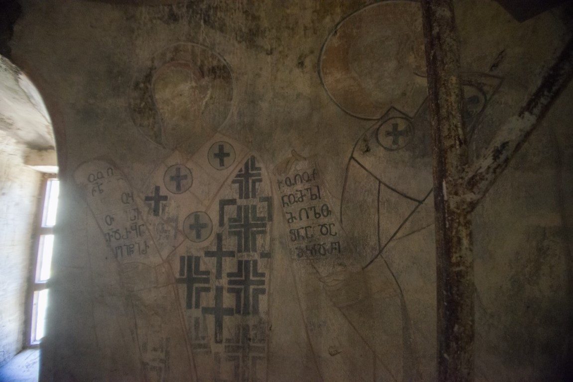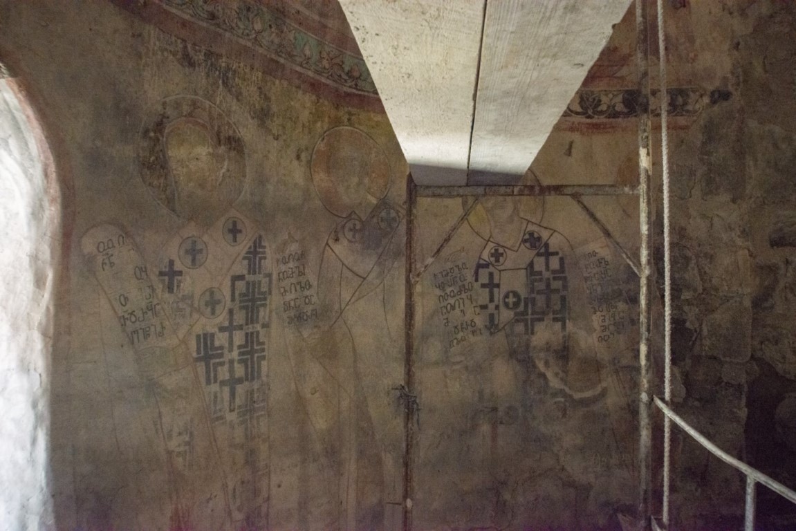 დიდი ზომის ეკლესია დარბაზულია სამხრეთისა და ჩრდილოეთის მინაშენებით. ეკლესიის ინტერიერი მოხატული იყო. აფსიდზე შემორჩენილია ფრესკის ფრაგმენტები. ფრესკები XII ს-ისაა. შიდა სივრცე აზიდულია. სამხრეთის მინაშენი დანგრეულია. ჩრდილო მინაშენი ორი ნაწილისგან შედგება: აღმოსავლეთის - შედარებით მცირე სათავსია სწორკუთხა კედლითა და მასში გაჭრილი სარკმლით, ხოლო დასავლეთის - საძვალეს წარმოადგენს. დასავლეთ ფასდზე, ფრონტონის კეხზე ორნამენტებია. ეკლესიას გადანაკეცებიანი კარნიზი აქვს. დიდ ეკლესიას ჩრდილო_აღმოსავლეთის მხრიდან მიდგმული აქვს შედარებით მცირე, დარბაზული ეკლესია. ხელოვნების მუზეუმში დაცულია ეკლესიიდან წაღებული XV ს-ის ხის კანკელი.